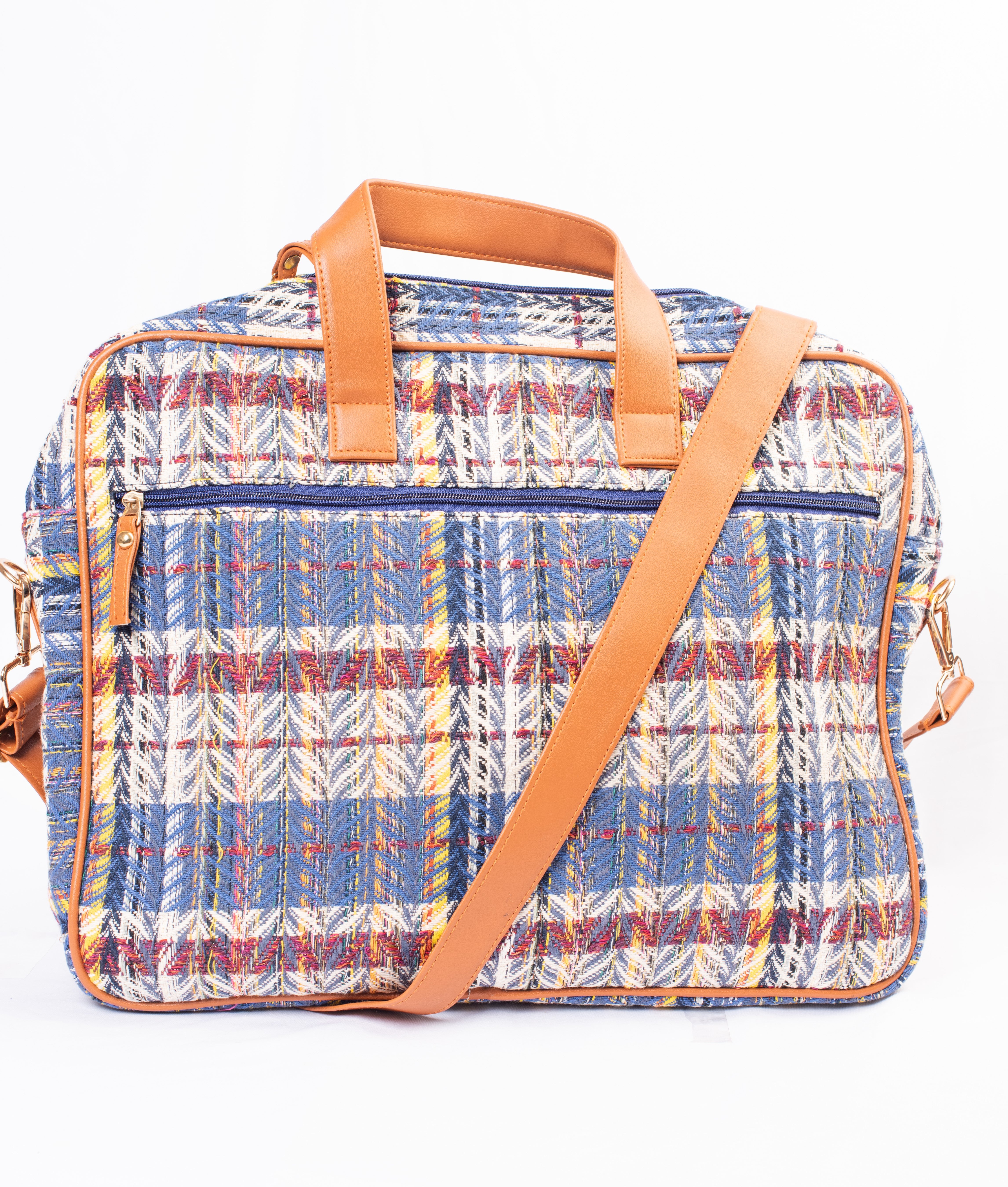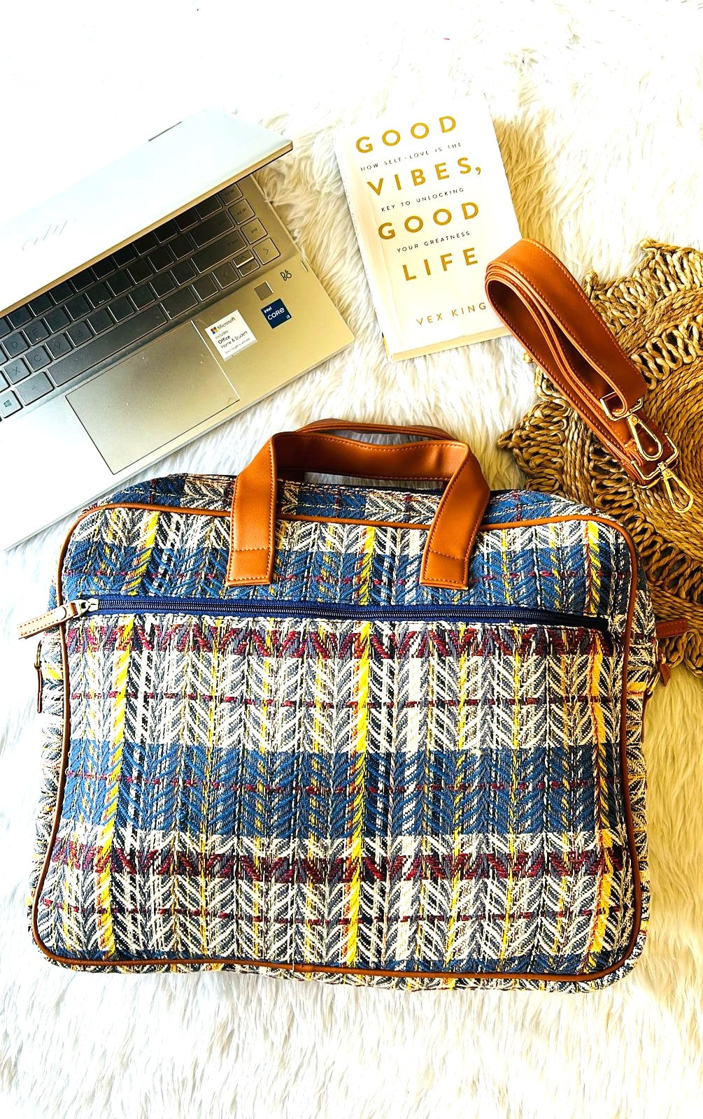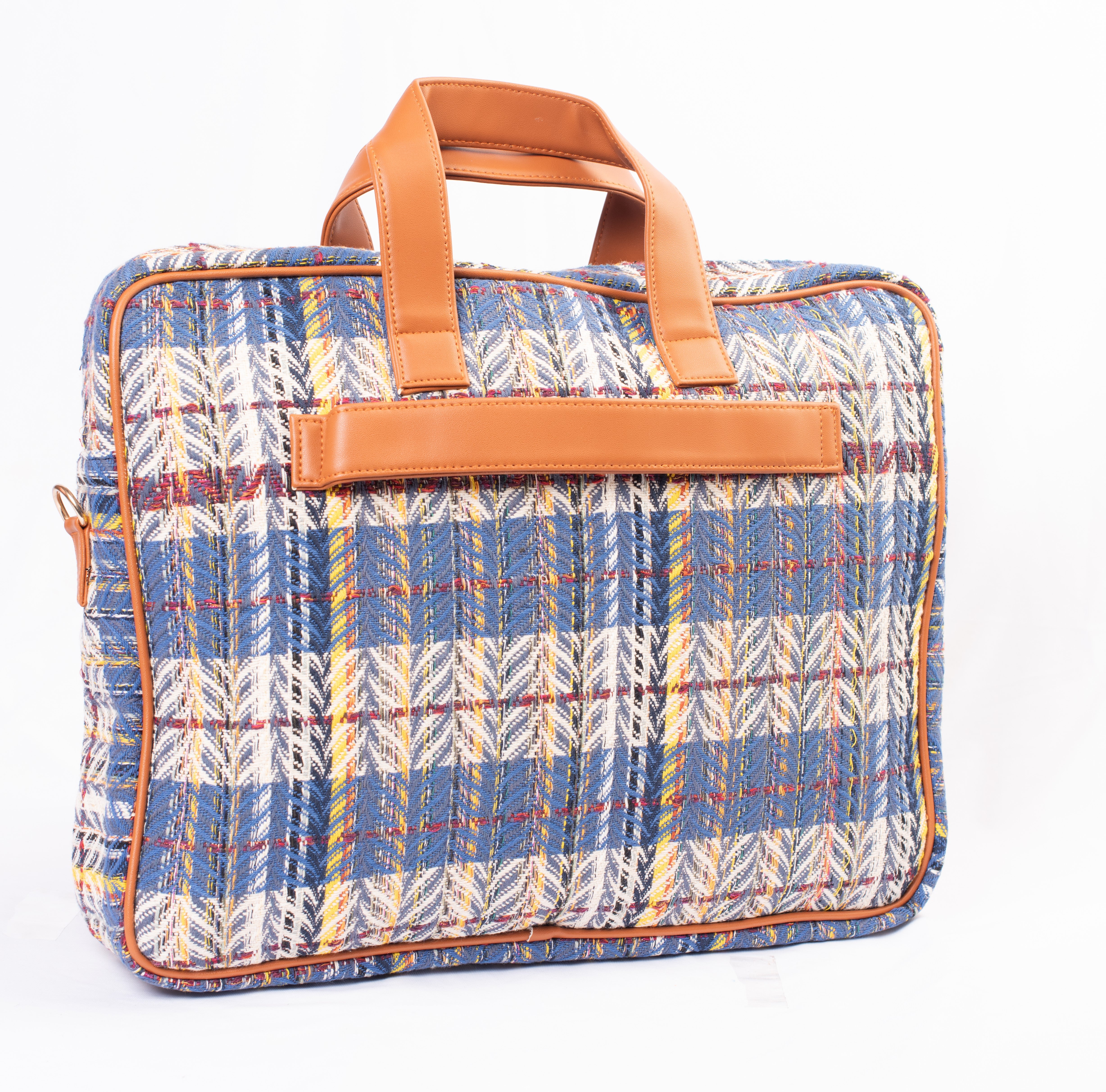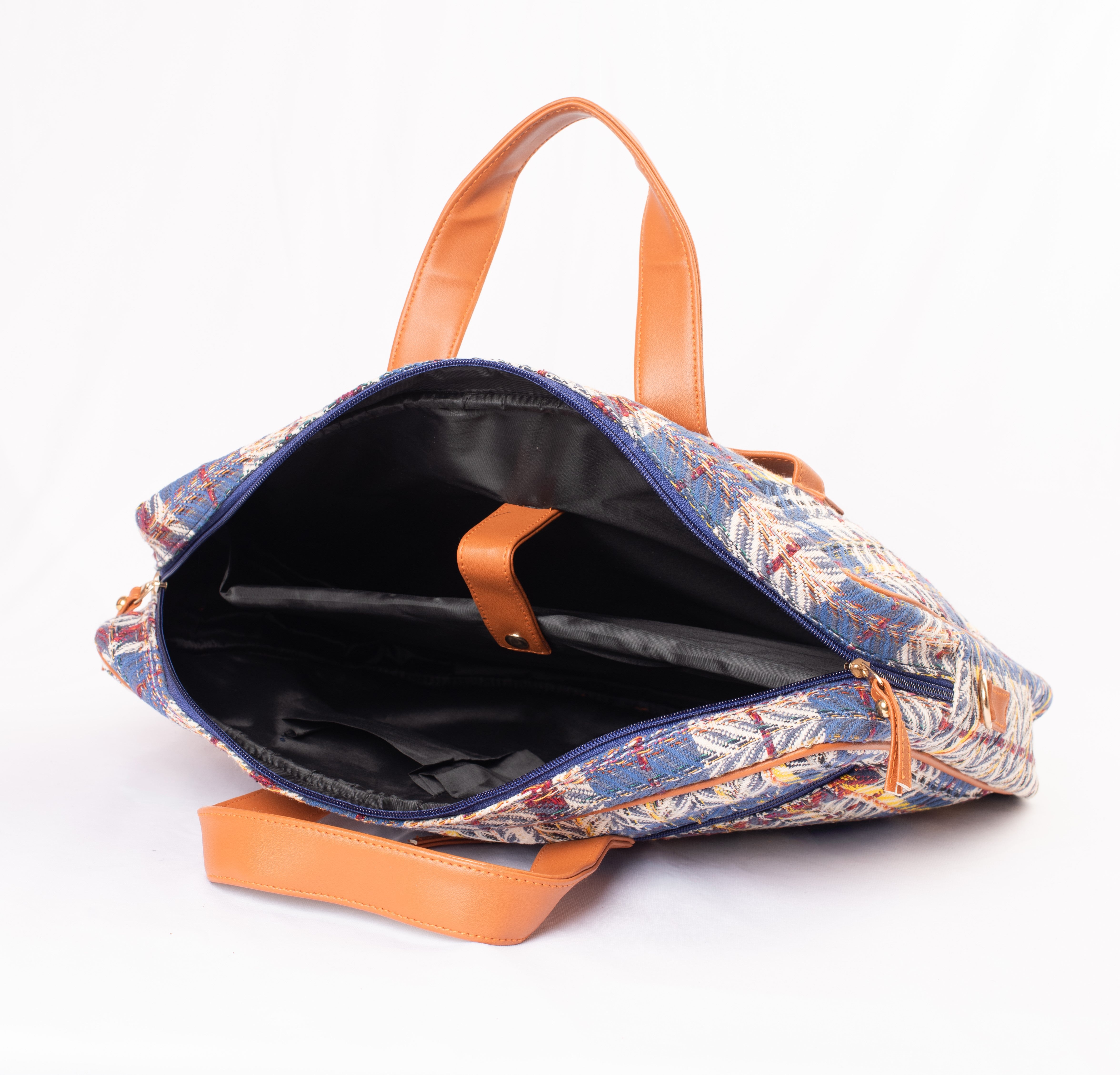 Designed to fit laptops up to 16' .This bag combines elegance and practicality with its premium jacquard fabric and high-quality vegan leather.