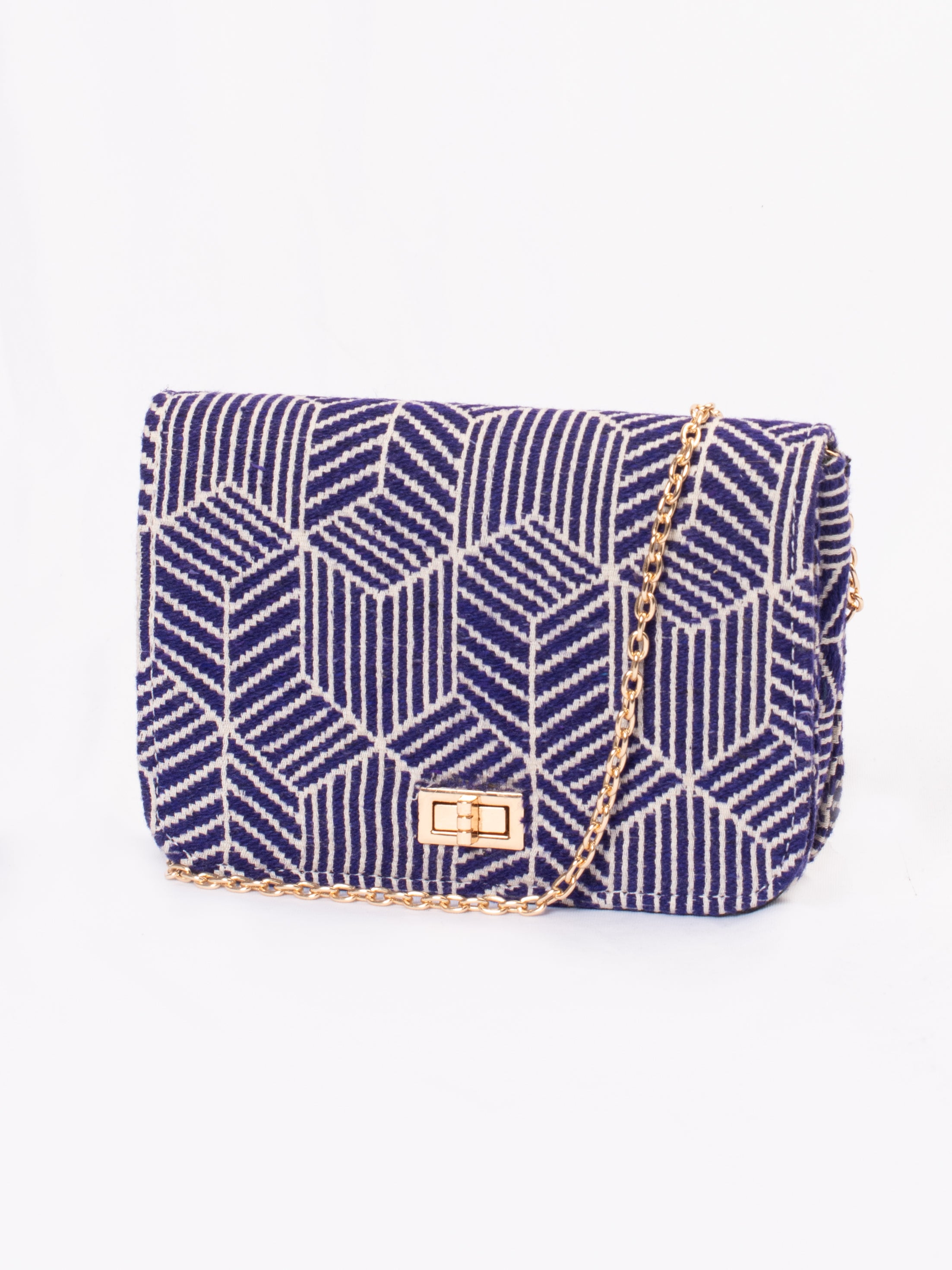 Our go to sling collection is a range of five handcrafted cotton jacquard sling bags that can elevate your look from glam to damn!Comes with a single compartment and an internal zip pocket to carry your essentials while accompanying you on your brunch dates to Friday nights and every other occasion indeed. Under luxurious appeal of this style, featuring a smaller body, with a more angular profile. Long, slim chain straps offering both traditional slings and cross-body styling. A water-resistant lining and a turn-lock closure that adds to the aesthetics.